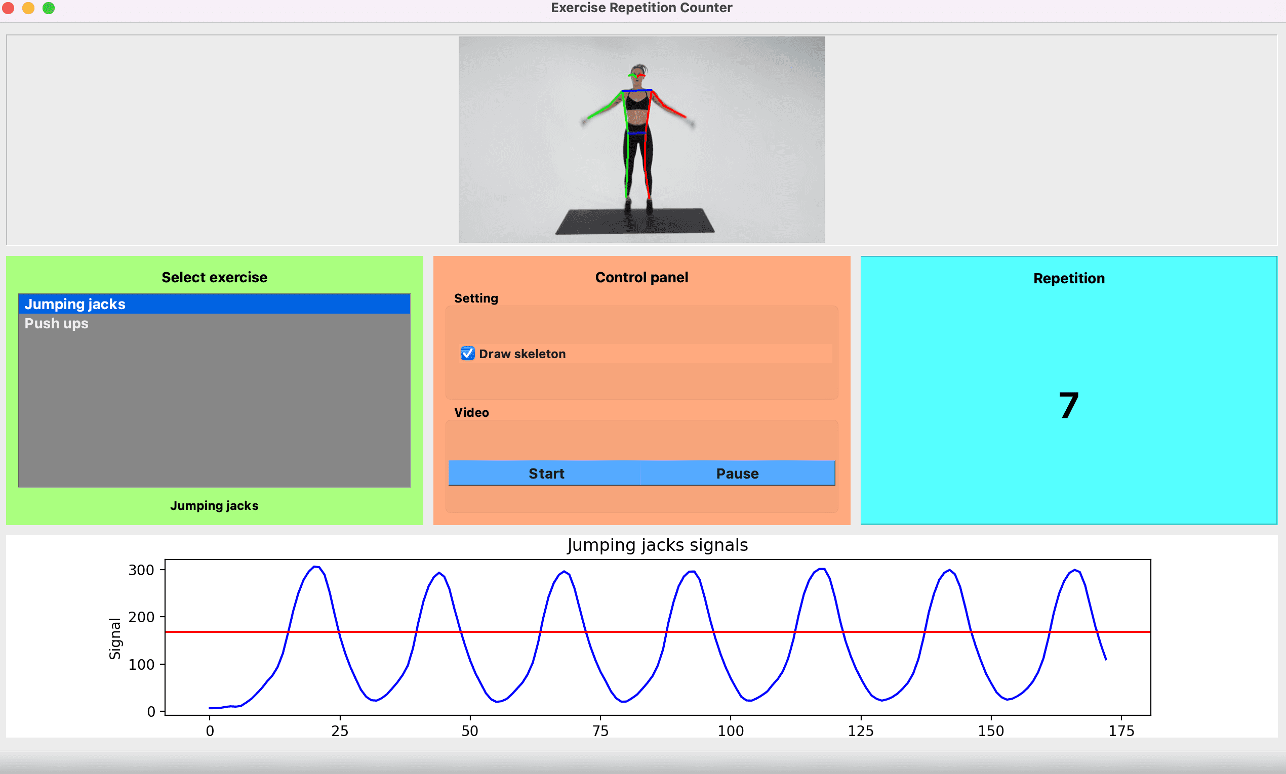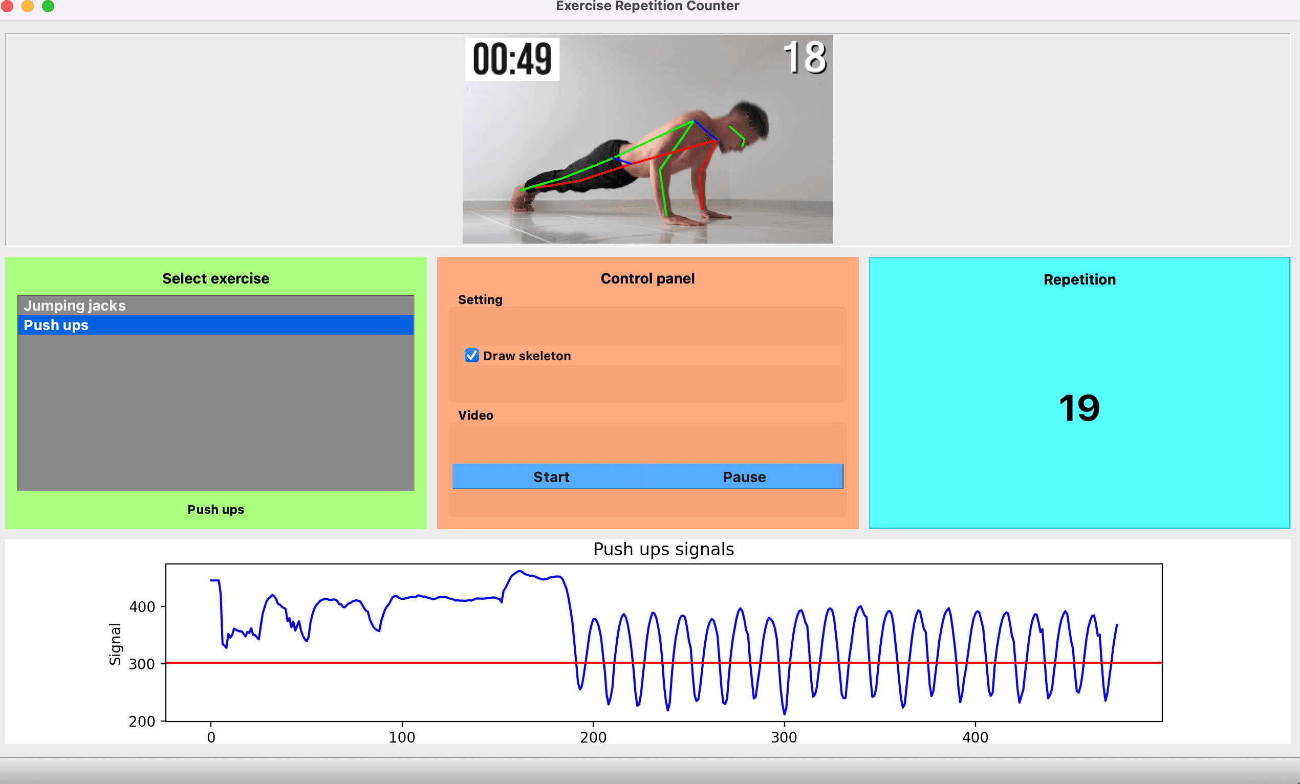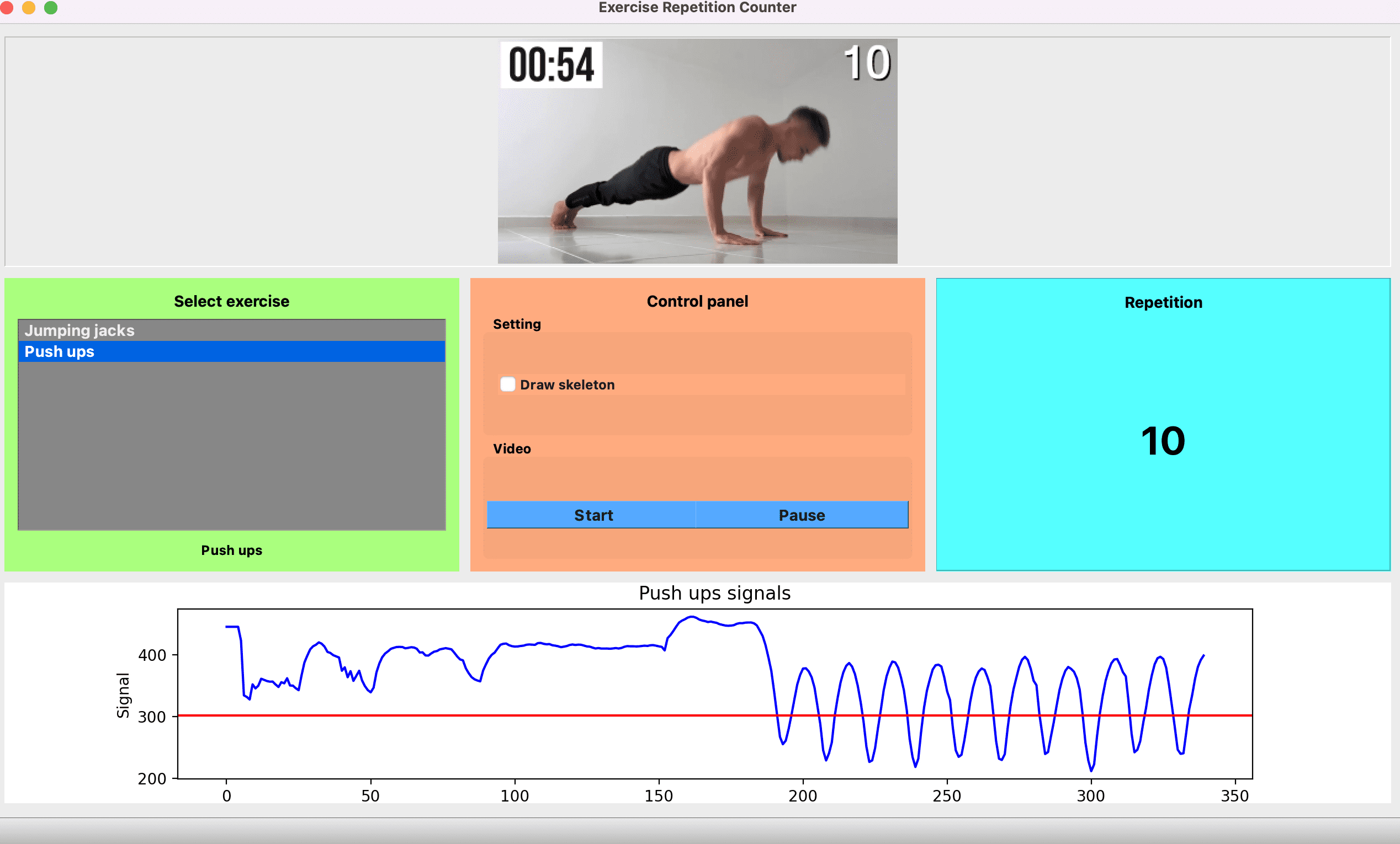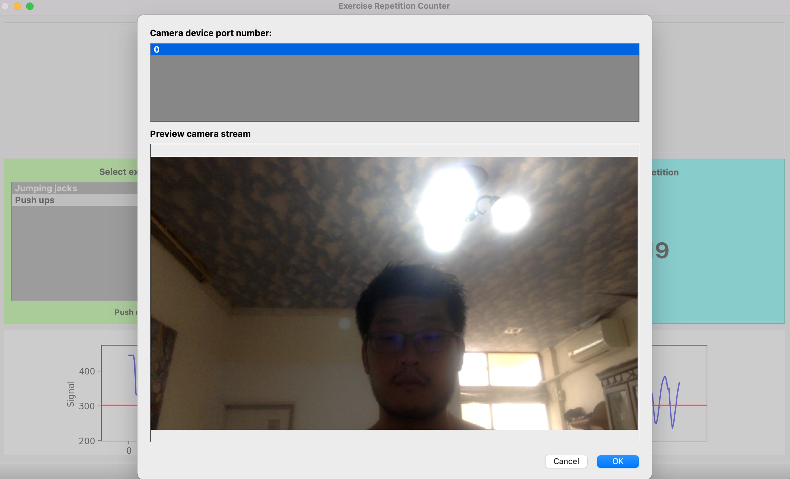 their exercise or use stream from camera to achieve real-time exercise repetition