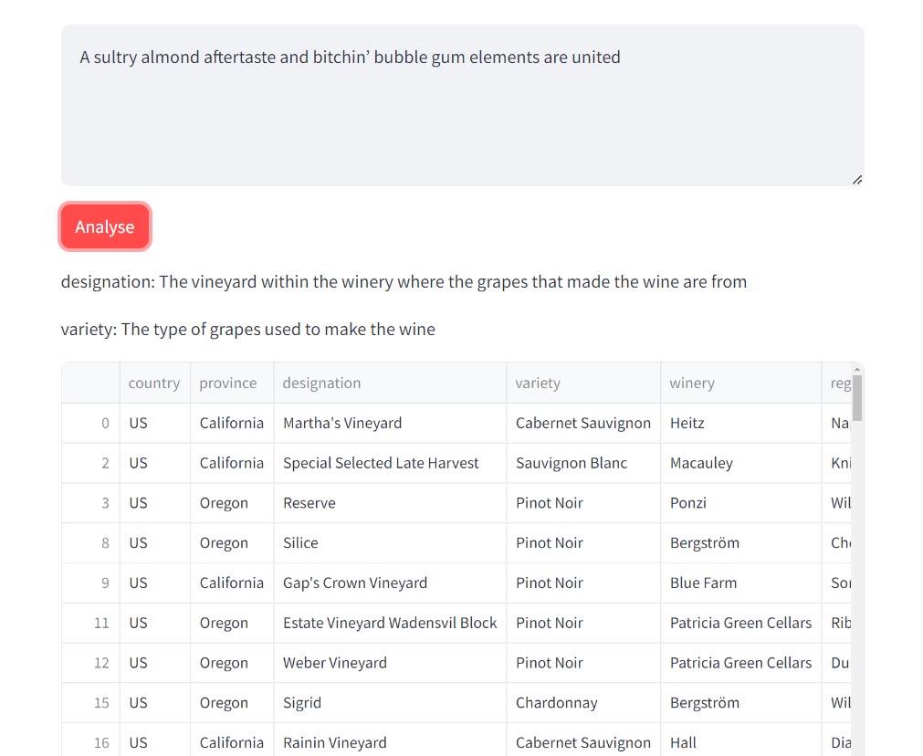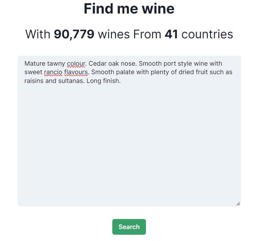 Use your sentiment about a wine for searching could shorten this process.