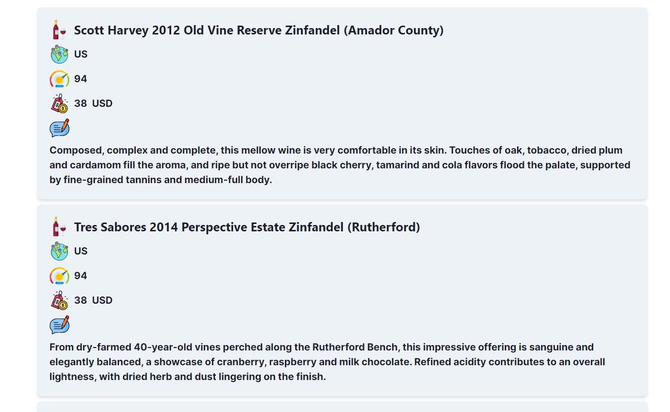 Old version only provide wine's title, country, score, price(💲USD) and description.