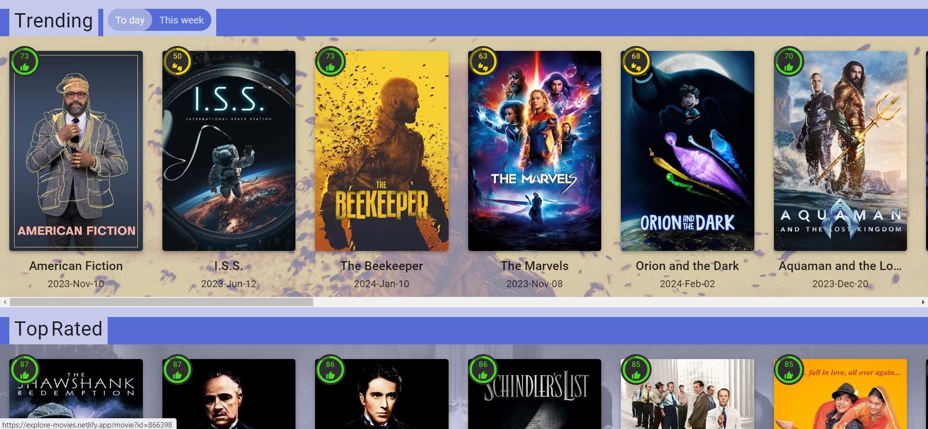 A website let you explore movies. The website give you information about movies.