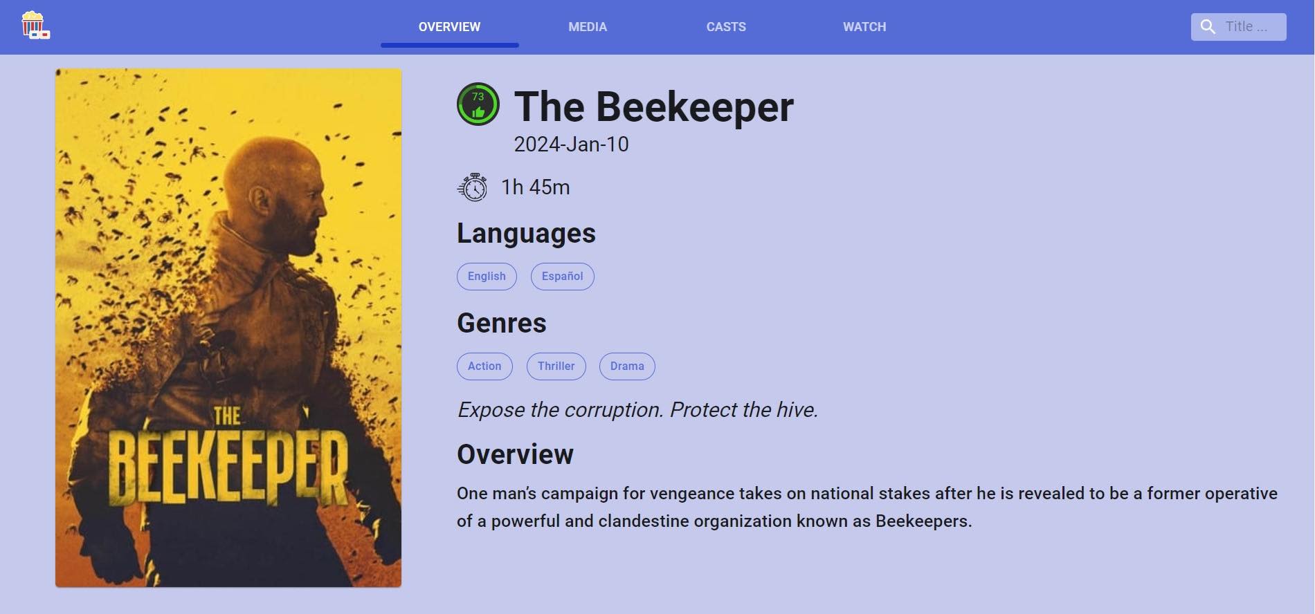 Furthermore the webiste also tell you what lanaguages are available for a movie, how