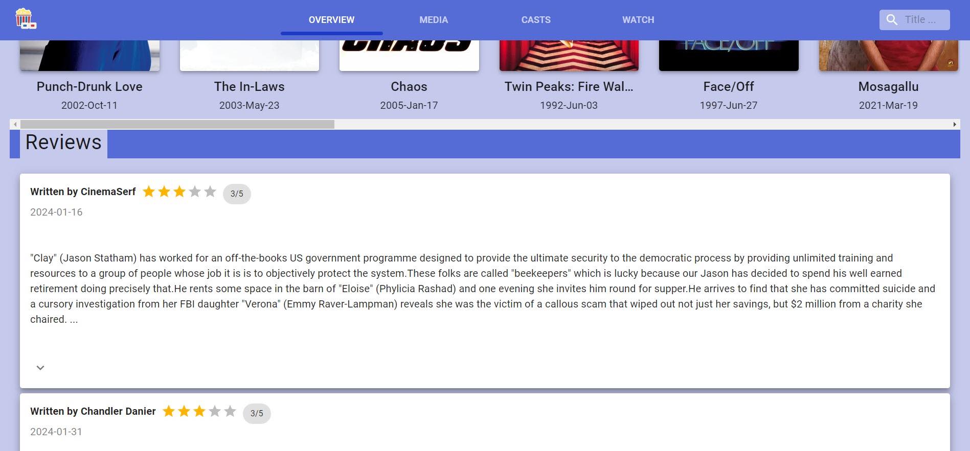 the movie and rating from many peoples.
